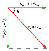 Calculate the peak to peak voltages Vr appearing across R and Vc appearing across C when an AC supply voltage of 2Vpp at 1kHz is applied to the circuit as shown.