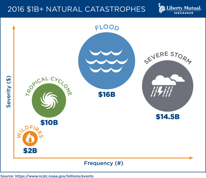 - In 2016, 14 separate weather-related events cost more than $1 billion each (see graphic below).1